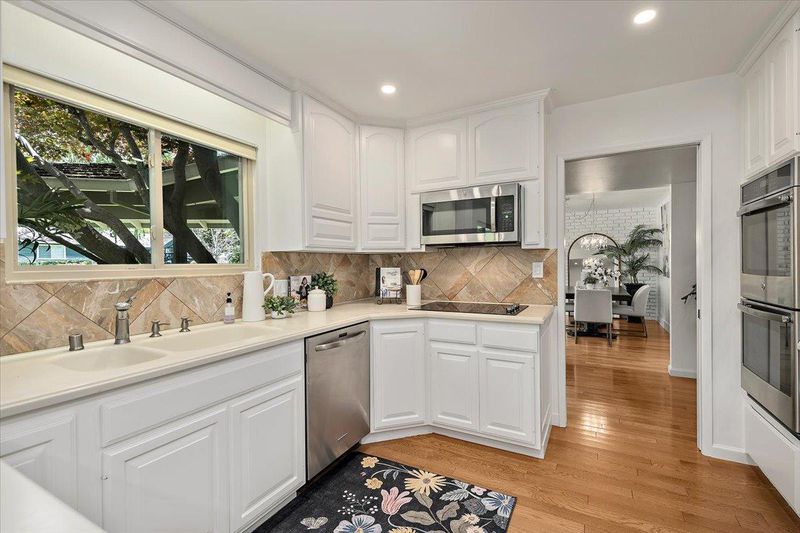 - Cooktop - Electric, Countertop - Solid Surface / Corian, Dishwasher, Garbage Disposal, Hookups - Ice Maker, Microwave, Oven - Double, Oven - Self Cleaning, Pantry, Refrigerator