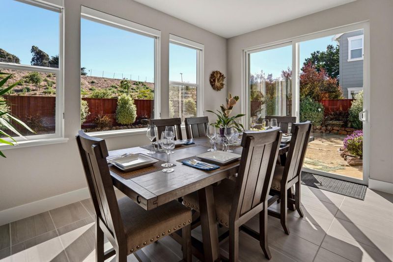 If your desire is to purchase a residence at The Dunes with generous, private views, this home will not disappoint. From the moment you step inside you will be captivated by the unparalleled views from the sunny back patio with firepit and stone slab pathway. The property is in a quiet, rarely available setting at The Dunes with Hilltop Park and its adjoining puppy park nearby. The home is elegantly finished. A statement chandelier in the soaring entryway serves as starting point for further refinements in this gracious home. The kitchen is a dream with upgraded round-edge granite counter tops, white cabinets with subway tile backsplash, vintage industrial pendants, reverse osmosis water, and Kitchen Aid appliances. There is a linear gas fireplace with blower, and a surround sound system downstairs. Upstairs features include a stair nook with built-in desk, glass barn door at the loft / den, upgraded carpeting, upgraded tile on the primary shower floor, primary mirrored closet, and upper laundry cabinets. The home has upgraded interior paint, window coverings throughout, full-house Rain Soft water, EV charger, backyard irrigation, and Sunrun NEM.2 solar (leased). From this home you will enjoy a 15-minute walk to Fort Ord Dunes State Park.