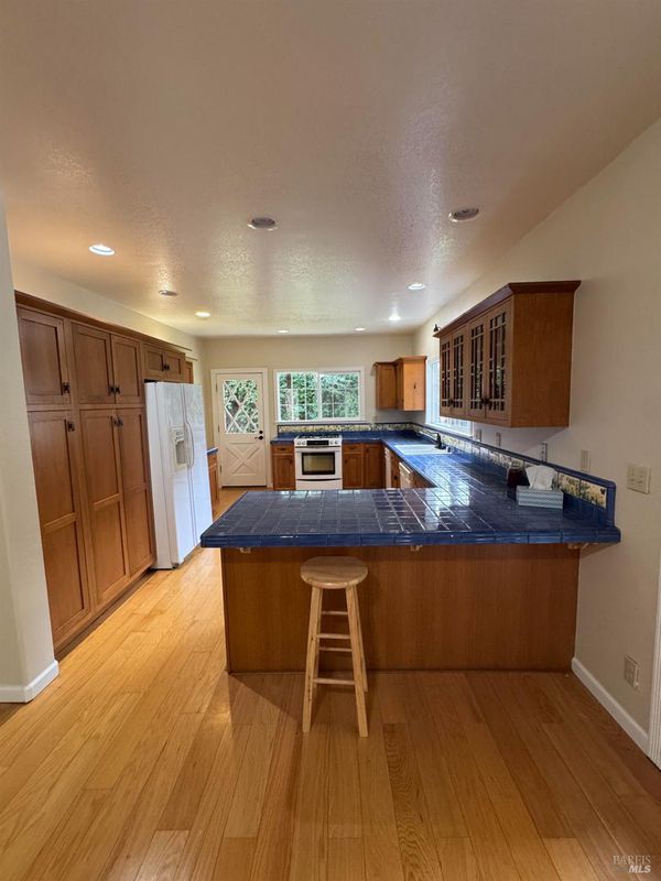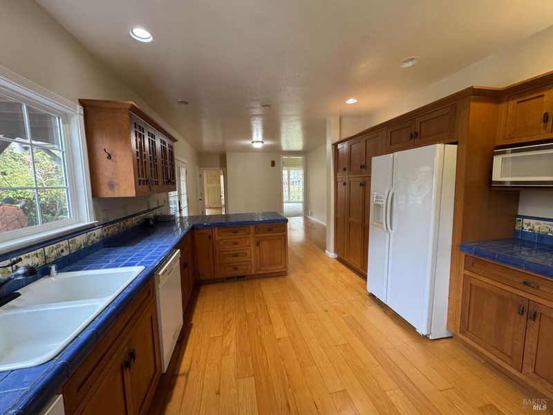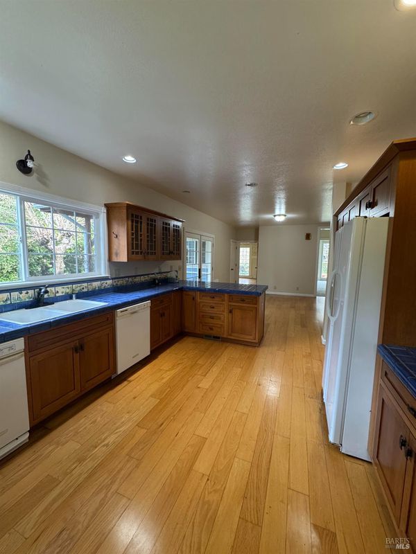 Beautiful Craftsman style home located in Ukiah's coveted westside on one of the most sought-after beautiful streets offers character plus charm. This special home shows pride of ownership throughout and offers over 3400 sq ft of living space plus a 1 car detached garage with alley access. Enter in through the park- like setting into the large formal living room with high ceilings and an abundance amount of natural light opening to the charming formal dining room with wood flooring and original built ins. Spacious primary suite featuring separate sitting area, walk in closet and fireplace. Updated primary bathroom with jacuzzi tub. Lovely kitchen with custom cabinetry and tile countertops. Upstairs offers inside and outside access and features 3 large bedrooms, 2 bathrooms, kitchen and living space perfect for an in-law or care takers unit. Built in 1915 and remodeled in 2017. Central heat and air conditioning. Brand new roof, gutters and sewer lateral line . Enjoy a peaceful, private lush setting for entertaining and relaxing, Covered seating areas, large cement front porch, exterior decking and more. Room to garden. Walking distance to downtown. This home is truly special and a gem!