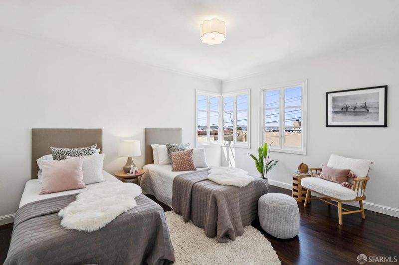 Grand Balboa Terrace Classic! 126 Aptos Avenue is a timeless 1930s residence offering over 3,000 square feet of beautifully curated living space. Set in one of San Francisco's most desirable enclaves, this six-bedroom, three-bathroom home captures sweeping ocean views, features a rare four-car garage with expansion potential, and is ideally positioned directly across from a premier park and playground. Bathed in natural light, the home showcases refined period detailing paired seamlessly with thoughtful contemporary updates. The expansive living and dining rooms are anchored by beautifully refinished hardwood floors and fresh interior paint, creating an elegant yet inviting atmosphere. The updated, south-facing kitchen features new countertops and flows effortlessly into a bright breakfast room complete with a charming built-in hutch. The upper level offers a true penthouse-like experience, highlighted by dramatic 180 views of the Pacific Ocean and access to a newly renovated full bathroom. Two additional bedrooms on this level enjoy direct access to an enclosed sunroom, perfect for relaxation or creative use. The spacious lower level provides exceptional flexibility, featuring a laundry area, abundant storage, and a bonus room ideal for a home office, guest suite, or extended living space, complemented by a full bathroom. The expansive garage accommodates up to four vehicles and presents a compelling opportunity for future expansion. Outdoors, the garden is framed by a classic white picket fence and set along a private access easement.