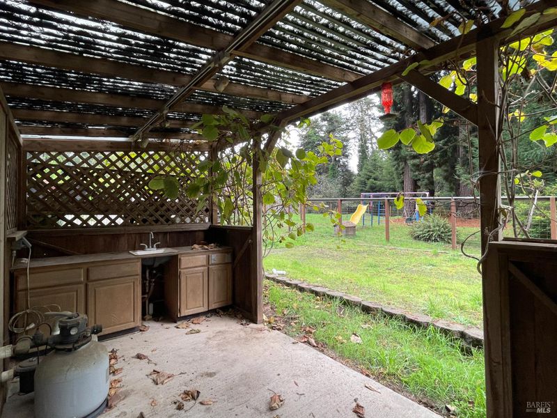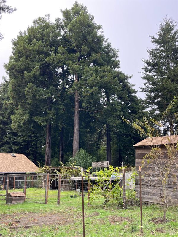 Located between Fort Bragg and Mendocino on a private, level, 1 acre parcel, this great home and property is fenced and cross-fenced for fruit trees, garden space, pets, chickens, play and BBQ areas. 1435 square feet on the ground floor and 624 square feet in a finished attic space with 3-rooms. Plus, a large, covered, front porch, and an expansive, backyard deck that's accessed from the dining room sliding glass door. Perfect for BBQs and outdoor gatherings. Connections for an above-ground swimming pool are still in place. Roomy home interior, high ceilings in the living area, and finished attic rooms for expanded living space. Open-plan dining and kitchen. Lots of counter space and storage, including a large room with natural light adjacent to the dining area for a walk-in pantry, office, or playroom. Detached unit in converted garage at the rear of the property. 2-RV hook-ups. Wiring for an on-demand generator in place and ready for connection. 2-wells on the property. Multiple water storage tanks. Amazing Redwood groves create a peaceful and parklike setting.