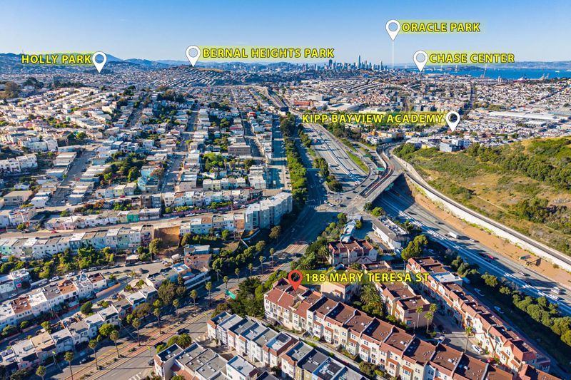 Bright, sun-filled corner home with LOW HOA and panoramic bay and city views from every room a rare combination in San Francisco. Large windows and multiple exposures bring in natural light all day, creating an open and comfortable living space. Enjoy the view from your private deck, perfect for relaxing or unwinding after work. The home features a multi-level townhome-style layout with two spacious suites, each with its own bathroom, ideal for privacy, guests, or shared living. High ceilings, a gas fireplace, and a bright, airy layout enhance both comfort and livability. Well-located for every lifestyle easy access to Highway 101, Caltrain, and Muni for a smooth commute to downtown SF, the Peninsula, and SFO. Tucked away in a quiet, private setting, yet just minutes to Dogpatch, Potrero Hill, Hmart, and outdoor spaces like Candlestick Point State Recreation Area for trails, water, and fresh air.