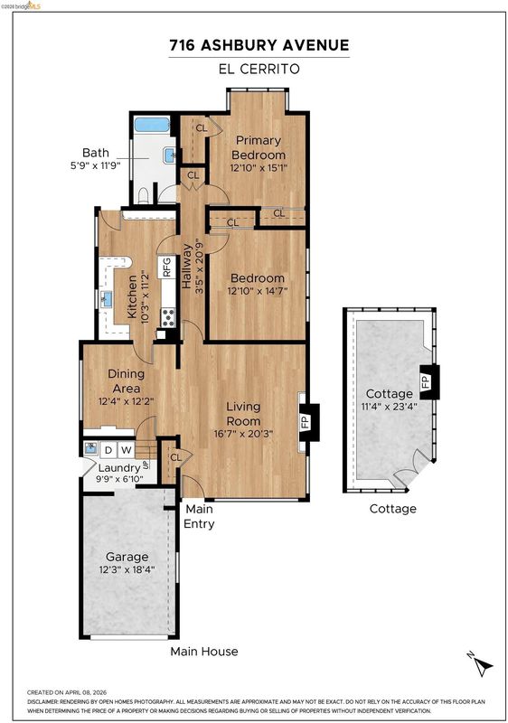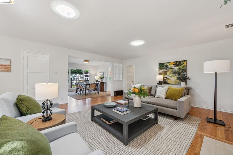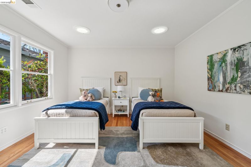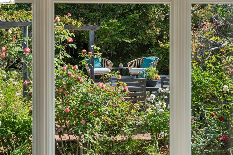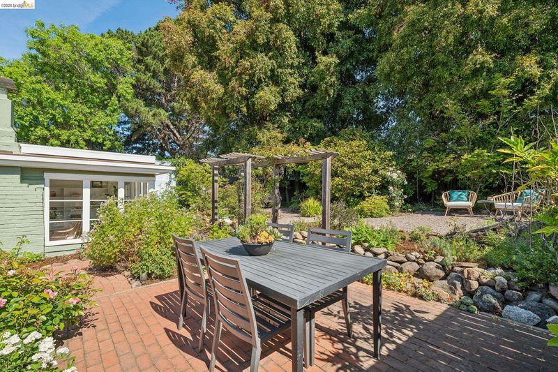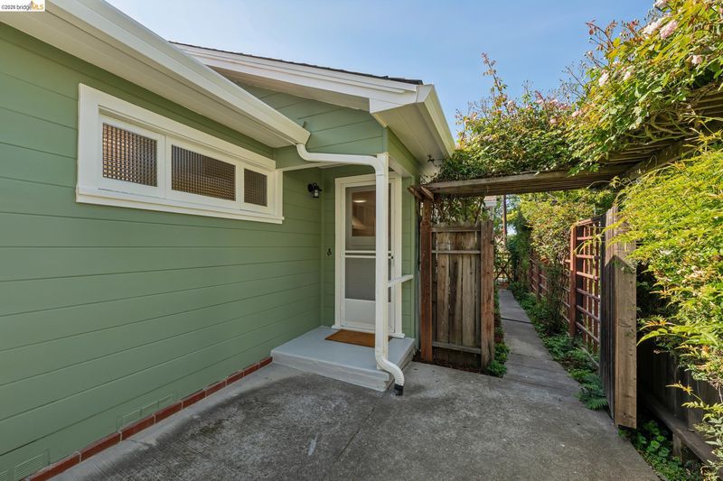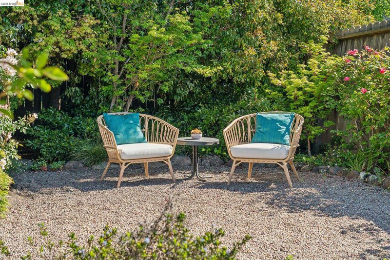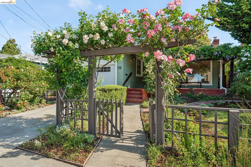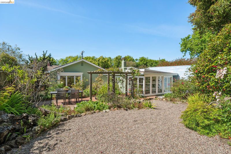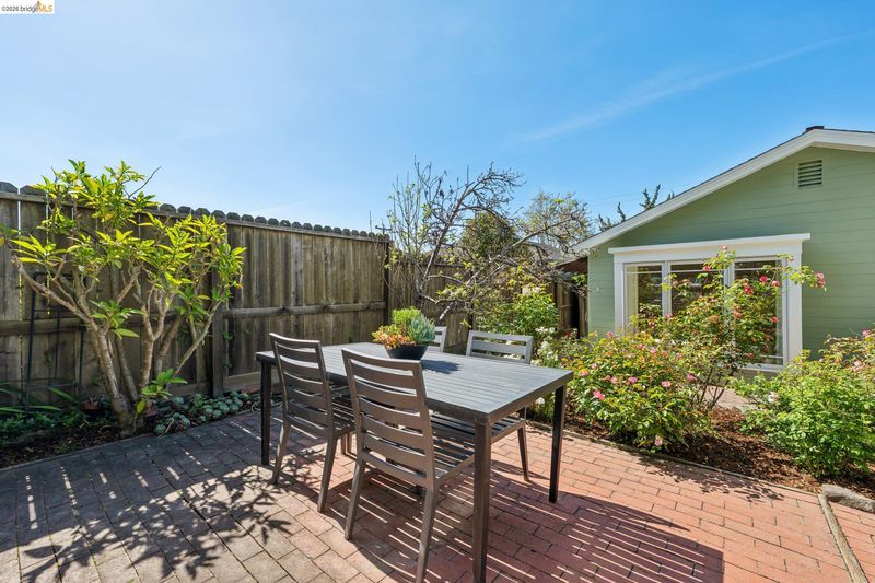 This enchanting El Cerrito garden cottage, nestled in the sought-after Fat Apple’s neighborhood, offers a whimsical retreat close to everything. Community amenities under a mile away include El Cerrito BART, Colusa Circle and Sunday farmers’ market, Cerrito Vista Park, and the Community & Swimming Center, to name just a few. From the sidewalk, you enter the garden through a wooden gate, and immediately you’re greeted by rambling soft yellow roses and flowering wisteria vines. The covered porch provides a peaceful transition from the street into the tranquil home. Windows with views to the garden can be found in every room. The gracious living room and dining room are generously sized to comfortably gather with friends and family. A sweet vintage-tiled kitchen has direct access to the back porch and meandering garden. Two light-filled bedrooms down the hallway and charming original tiles in the bathroom add to the enchanting character of the home. The primary bedroom has a large garden window connecting the room to the idyllic backyard. Just through the kitchen door on your way to the garden, you can’t miss the detached garden cottage, with 2 window-filled walls and a fireplace; it’s the perfect spot for art or play, come rain or shine. This bonus space invites your imagination.