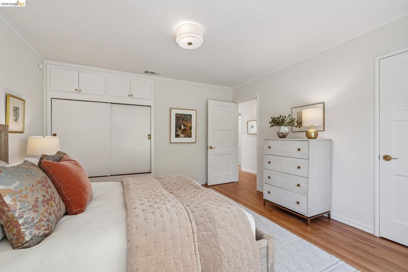This enchanting El Cerrito garden cottage, nestled in the sought-after Fat Apple’s neighborhood, offers a whimsical retreat close to everything. Community amenities under a mile away include El Cerrito BART, Colusa Circle and Sunday farmers’ market, Cerrito Vista Park, and the Community & Swimming Center, to name just a few. From the sidewalk, you enter the garden through a wooden gate, and immediately you’re greeted by rambling soft yellow roses and flowering wisteria vines. The covered porch provides a peaceful transition from the street into the tranquil home. Windows with views to the garden can be found in every room. The gracious living room and dining room are generously sized to comfortably gather with friends and family. A sweet vintage-tiled kitchen has direct access to the back porch and meandering garden. Two light-filled bedrooms down the hallway and charming original tiles in the bathroom add to the enchanting character of the home.