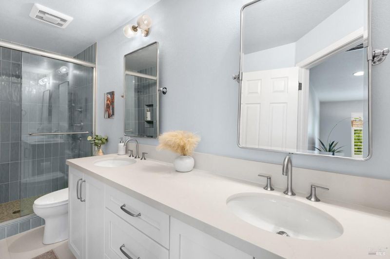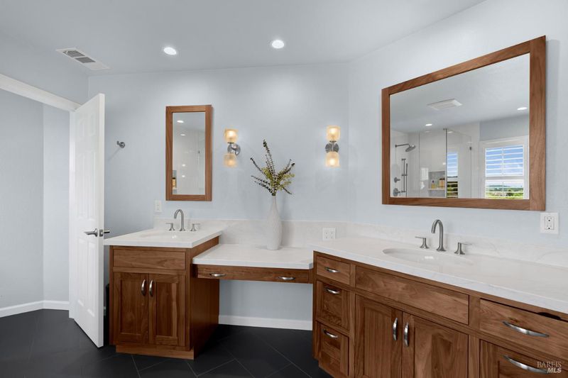 - Double Sinks, Shower Stall(s), Soaking Tub