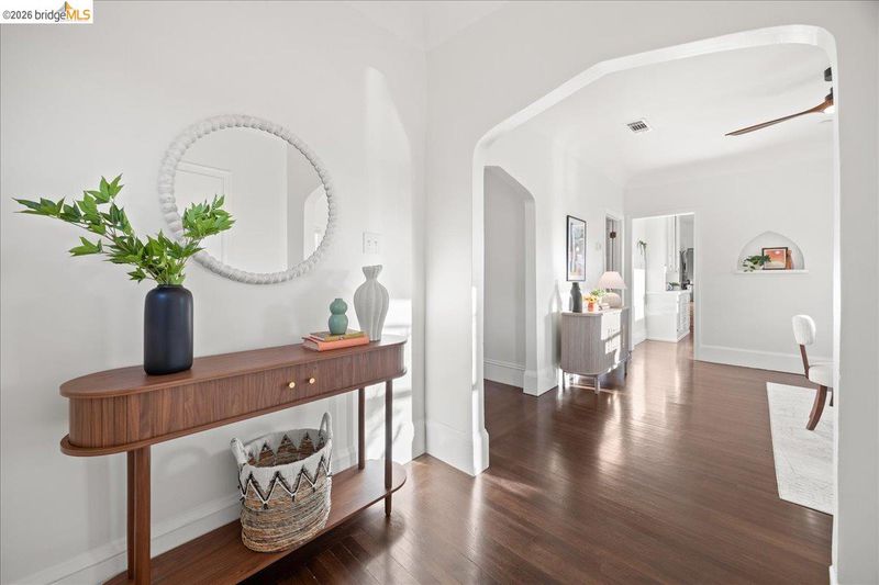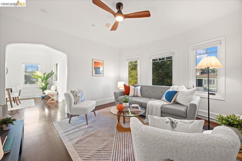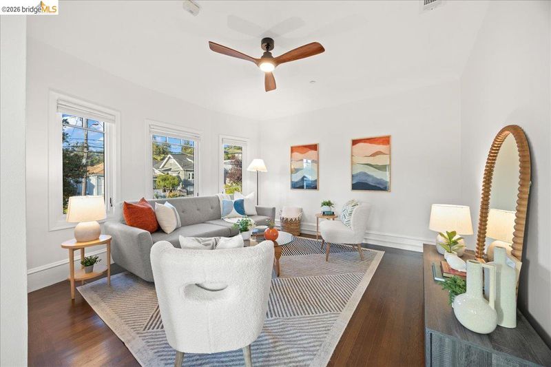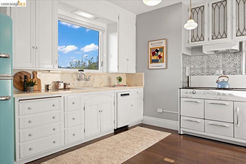 Reimagined from a 1910 Craftsman bungalow, 2201 Coloma is now the top residence at Rose House Condos, a 3-unit conversion in the vibrant Dimond District—yet lives beautifully as the single-family home it was always meant to be. Enter the foyer leading to a charming living room & dining room with original Craftsman details throughout, including oak hardwood floors & custom built-ins. A gorgeous large kitchen is both stylish & functional, featuring a quartzite countertop, Big Chill refrigerator, classic Wedgewood stove that leads right to your private redwood deck for sublime indoor outdoor / living and spectacular sunset views. The bedrooms are nicely sized with ample closet space and a beautiful updated bathroom. In-unit laundry and a coveted front-row driveway parking space. Thoughtfully upgraded with a newer foundation (2014), french drain, Marvin dual pane windows, updated electrical and plumbing, owned solar, a 50-year metal cool roof, tankless water heater, and greywater irrigation, this home blends timeless character with fully modernized systems. The property features a lush communal garden with mature fruit trees with Apples, Plum, Orange, Lemon, Fig, Pear, Grapes, Quince + veggie garden beds. Convenient to shopping,restaurants,coffee, transportation. 91 Walkscore®!