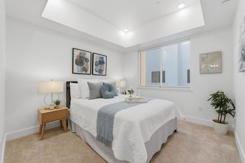 This stunning 2023-built townhome-style condo in Fremonts desirable Warm Springs neighborhood offers modern luxury and Mission Peak views. Spanning two levels, the bright open floor plan features high ceilings, upgraded carpets, and a gourmet kitchen with gorgeous quartzite countertops, a single-basin sink, and stainless steel appliances. The thoughtful layout includes a full bedroom and bathroom on the lower level, while the second floor offers two spacious bedrooms, each with a private en-suite bathroom. An indoor washer and dryer are conveniently located in the hall closet. A commuters dream, this home is within walking distance of the newly approved Irvington BART Station. Residents enjoy premium building amenities, including a stylish lobby lounge, fitness room, secure storage lockers, and bike storage,. The sale includes two designated spaces in a secure gated parking garage. Perfectly situated near top-rated schools like Grimmer Elementary and Irvington High, this home offers both comfort and convenience with close proximity to grocery stores and to I880 highway. Don't miss this prime Silicon Valley opportunity! Buyers to verify schools.