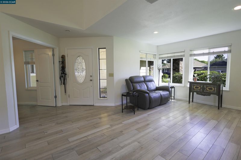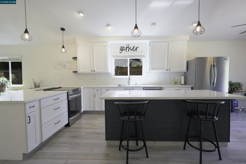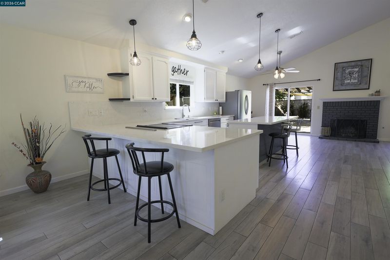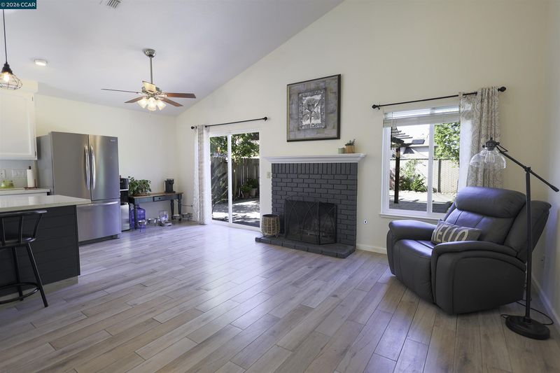 Walk into an inviting open space concept with front room and Kitchen, remodeled in 2024 with top grade oven-stove, dishwasher, cabinets and quartz counters. Upgrade porcelain tile throughout the home. Front bedroom is ideal for an office. New hot water heater 2025. Inside and out painted 2024 - 2025. Front room-kitchen new windows this year, master bed sliding glass door too. Gas starter for wood-burning fire place. Dryer can be either gas or electric. Roof about 2014. Lovely back yard. Don't miss the fruit trees, or huge covered pergola with beautiful pavers and lights. Near Costco, downtown and so much more. Walking distance to schools. Go to "unbranded link" under map to see a virtual tour. Open House Saturday April 18, 1 - 4 pm. Come see, slow down to rest, and enjoy your new home, inside or out!