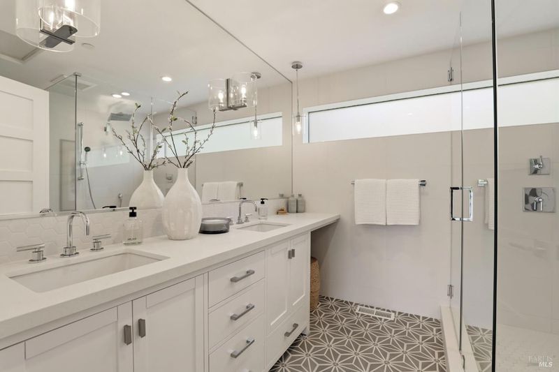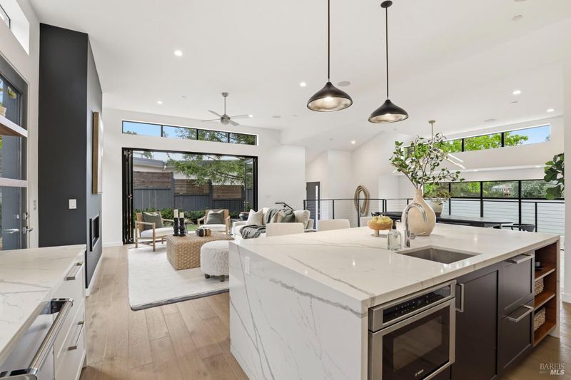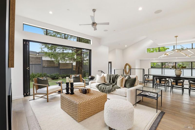 Modern newer construction with sleek mid-century lines in an exceptional Mill Valley location. 82 S Knoll offers a highly functional (nearly single-level) floor plan with a stunning great room that opens seamlessly to a flat, usable yard through expansive NanaWall doors. Ideal for effortless indoor-outdoor living. The chef's kitchen anchors the main living space with high-end appliances, custom cabinetry, and designer finishes, all thoughtfully selected by designers. The main level features a beautiful primary suite along with three additional bedrooms, offering flexibility for a variety of living needs. The lower level includes a spacious flex room with a full bathperfect for a media room, playroom, or guest suite. There is also a mudroom and dedicated laundry area off of the garage. Additional highlights include curated lighting and hardware, quality flooring throughout, and drought-friendly landscaping designed for both style and ease of maintenance. Located just moments from Strawberry Village and the Strawberry Rec Center, with easy access to shopping, dining, parks, and commute routes, this home offers a rare combination of design, function, and convenience.