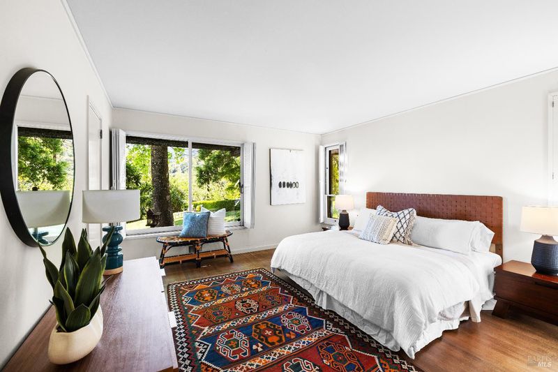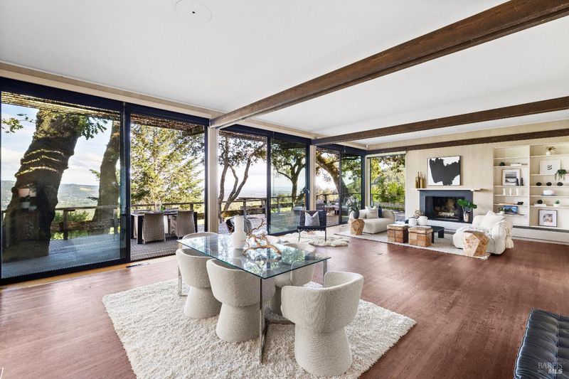 Designed by Joseph Esherick - one of California's most celebrated 20th-century architects and completed in 1960, this landmark Sonoma Valley residence is a compelling expression of his site-sensitive approach to architecture. Through his masterful use of proportion, materiality, and light, Esherick created a home that feels inseparable from its setting. Set on nearly 8 acres at the top of the exclusive Sobre Vista Estates enclave - one of Sonoma Valley's most coveted residential addresses, flanked by vineyards and surrounded by some of the valley's finest estates, 2395 Sobre Vista Road commands sweeping 180-degree views across Sonoma Valley toward Mount Diablo, San Pablo Bay, and the vineyards and mountains beyond. The setting is extraordinary, but it is Esherick's architectural response to that setting that makes the property so rare. His signature is evident throughout, from the vertical-board exterior siding and warm interior paneling to the soaring open-beam ceilings and carefully composed relationship between scale, openness, and outlook. Expansive walls of glass create a seamless connection between indoors and out, reinforcing the essential principles of his work and blurring the boundary between the built environment and the natural world. This three-bedroom, three-bath single-level residence includes two wood-burning fireplaces, original hardwood floors, an expansive view deck, and a screened outdoor living room. The grounds anchored by a majestic redwood grove, stately oak trees, an inviting swimming pool, and a lawn area extend the architectural experience into the landscape and capture the essence of California living. Just minutes from Sonoma Plaza and world-class wineries and restaurants, yet offering exceptional privacy and serenity, the property presents a rare opportunity to steward and restore a meaningful work by Joseph Esherick. This is a residence of true architectural pedigree, where enduring mid-century design, intentional siting, and a profound connection to the landscape come together in one of Sonoma's most exceptional settings.