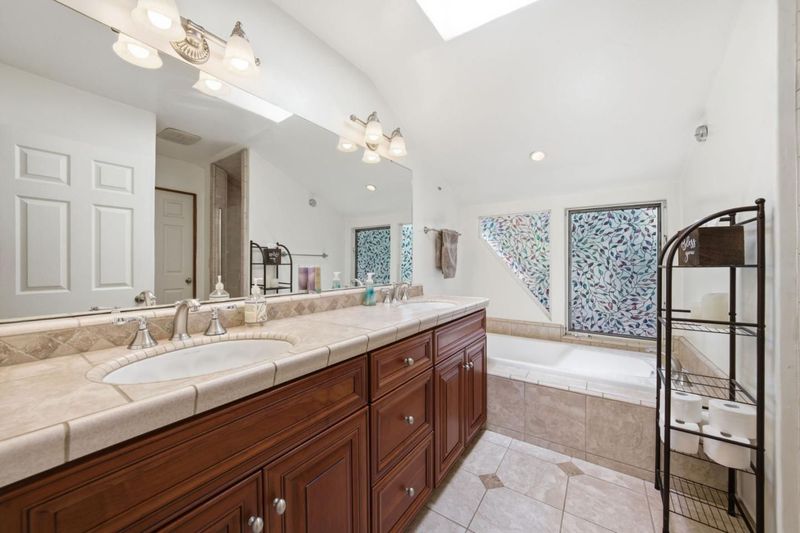 - Shower over Tub - 1, Double Sinks, Skylight, Tub in Primary Bedroom, Half on Ground Floor, Primary - Stall Shower(s)