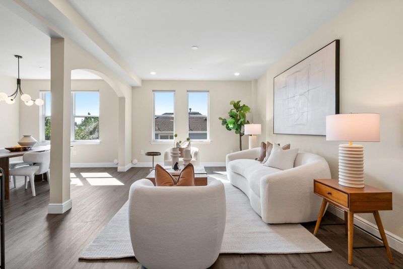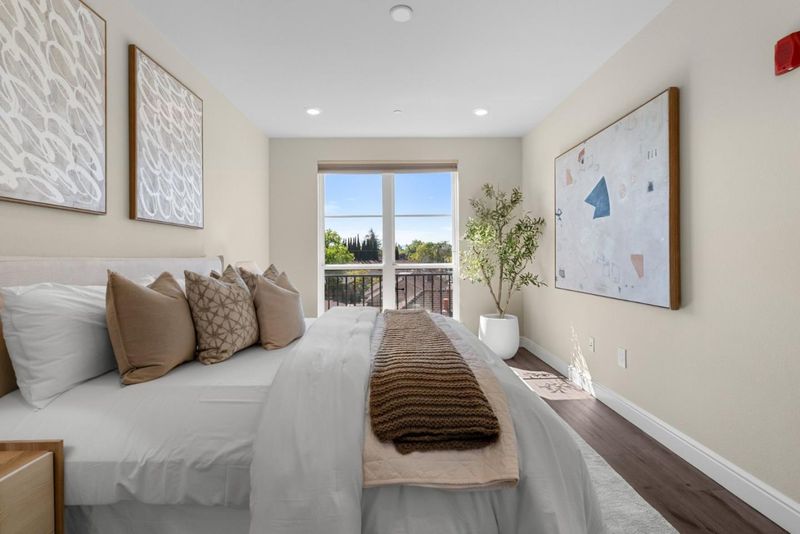 Rare opportunity to own a spacious corner unit that truly lives like a single-family home. This 4-bedroom, 3-bath layout offers great flexibility, including a desirable bedroom and full bath on the main level ideal for guests, extended family, or a home office. The bright, open living space is filled with natural light and enhanced by a quiet setting with no neighbors above or below. The kitchen features stone countertops, sleek cabinetry, stainless steel appliances, and a breakfast bar that flows seamlessly into the dining and living areas. Upstairs, you will find three additional bedrooms, all generously sized with great light and open views plus a huge walk-in closet. Nest thermostat for energy saving. Enjoy a secured building with amenities including a gym, clubhouse, and rooftop deck, plus two reserved garage parking spaces and additional 8x8x10 secured storage room. Prime Santa Clara location minutes to Nvidia, Apple, Santana Row, Google bus stop around corner, and walking distance to Santa Clara Town Center and Santa Clara University.