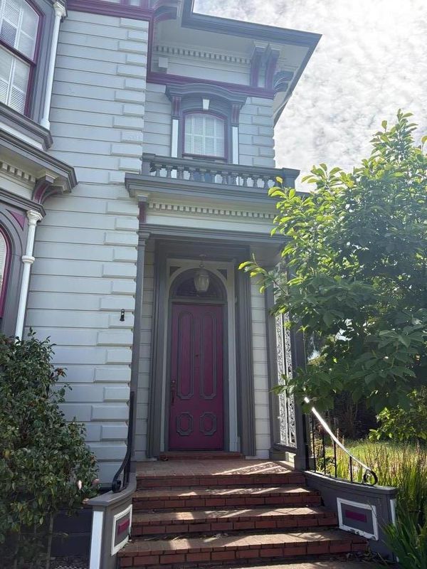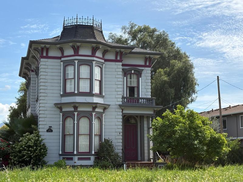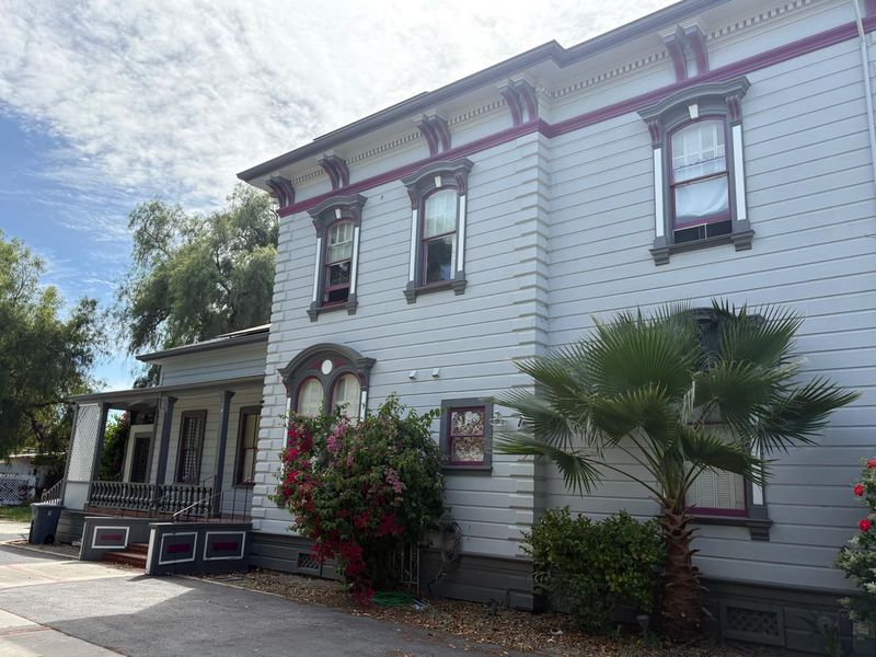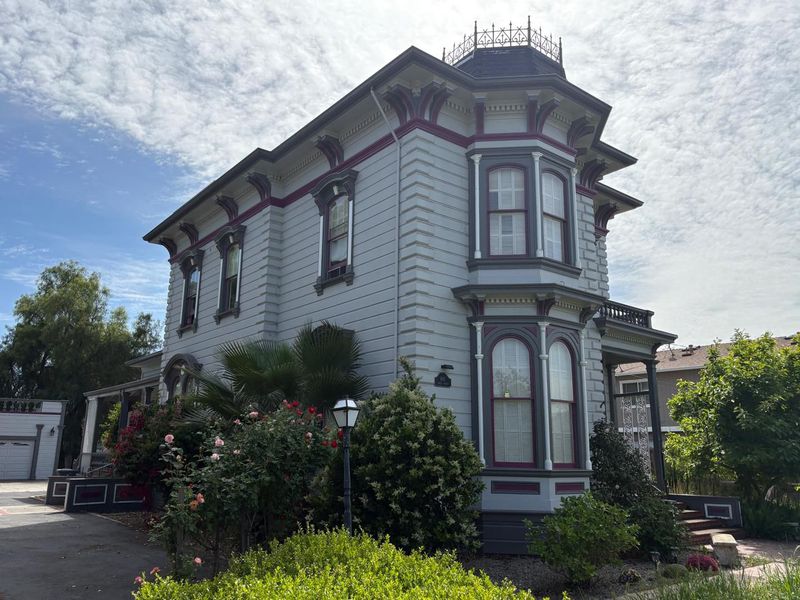 One-of-a-kind Victorian home listed on the historic register! Situated on an over 26,000 sq ft lot. This 4-bedroom, 2-bath residence with 2 additional 1/2 baths features many original details from a bygone era including crown molding, wood trim, beaded stained glass doors, tall ceilings, kitchen pass thru, original lighting throughout, fully fenced with iron gates, expansive patio, two driveways for extra parking...the list goes on and on. Hardwood floors in the kitchen, hallway, living room and primary bedroom. Spacious Living room with gas fireplace and decorative mantle. Master bedroom is downstairs with double door entry, walk in closet, and full bath. Detached 2-car garage, Air Conditioning, Alarm System, Window Shutters, Sun Porch, Curved Wooden Staircase and 28 Solar Panels. Many original features have been thoughtfully preserved, honoring the homes historic significance.This is a rare offering for those seeking a landmark home with character, space and history that simply cannot be duplicated.**New foundation, Roof, Plumbing and Electrical Redone in 1991**
