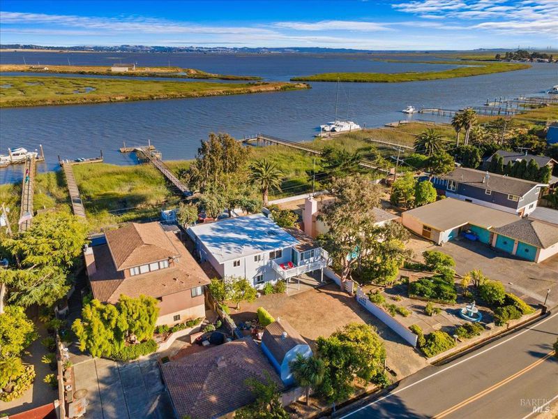 Serenely situated in a unique location along the banks of the Napa River, this bright and airy 3-bedroom, 2-bath home is a rare blend of natural beauty and refined living, perfect for both full-time residence and weekend escape. Approaching the home, you pass vineyards and vast fields with horses and cows. The chef-worthy kitchen, featuring an upscale Italian-imported range, flows seamlessly into an expansive living area where you are treated to panoramic views of the river and surrounding hills. The main-level primary suite provides a peaceful retreat, featuring a separate sitting room or home office, a full bath, and a private balcony overlooking the river delta. Ideal for entertaining, the glass-walled dining room opens to a sprawling rear deck perfect for relaxing, sunbathing, or dining and sipping wine under the stars. The entry level has 2 bedrooms, a full bath, a laundry closet, and a sitting room/office with a large closet. Listen to the calming sounds of birds, aquatic life, the flowing river, and gentle breezes. A private dock set adjacent to natural wetlands allows direct river access, completing the quintessential Napa Valley lifestyle. This home is situated just an hour from the Golden Gate Bridge, yet it feels a world away. Welcome home.