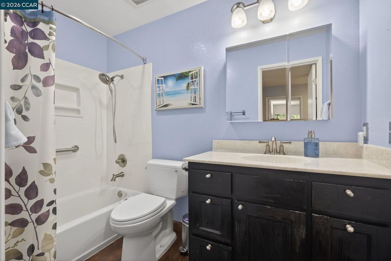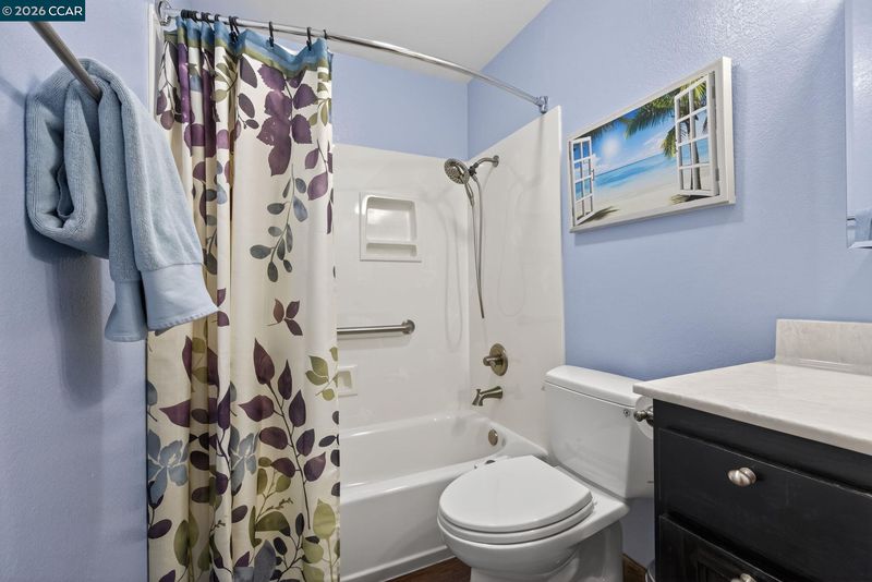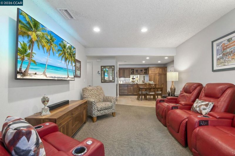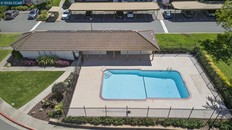 Don’t miss this exceptional ground-floor, level-in unit tucked away in a quiet location. The spacious private patio is ideal for a barbeque, a picnic table, and planting area. Enjoy the convenience of two reserved parking spaces—one covered carport and one uncovered spot both numbered 9121—just steps from your door. The spectacular kitchen and dining area showcase Black Walnut custom cabinetry, granite countertops, laminate flooring, stainless steel appliances, and plenty of lighting, including under-cabinet fixtures. The hall bath features durable vinyl plank flooring, while the main bedroom offers a private bath with a walk-in shower and a dressing area adorned with a stunning custom-built Cherry Wood vanity and cultured marble countertop. Berber carpeting adds comfort to the living room, hall bedroom, and main bedroom. Excellent double-pane windows and elegant plantation shutters are found throughout, ensuring style and energy efficiency. The laundry area includes washer and dryer hookups for added convenience. This development boasts amenities such as a pool, clubhouse, play area, and beautifully maintained landscaping. Located close to shopping, transportation, parks, and schools, this unit offers both convenience and tranquility. Don’t miss out—this home is truly beautiful!