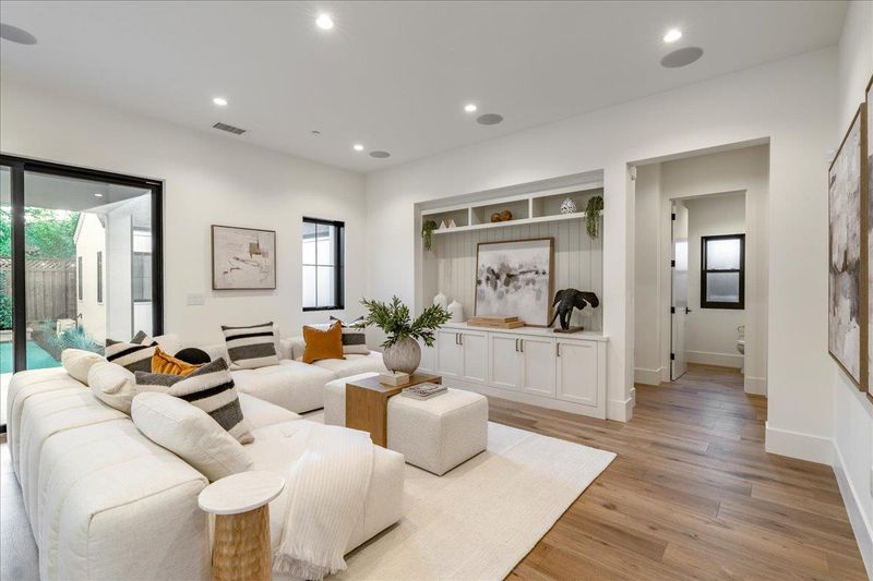 Impeccable brand-new construction in the coveted "Caminos" of Willow Glen, highly sought after floor plan, main home boasts 4 bedrooms featuring a ground floor junior suite, plus a dedicated office, 4.5 bathrooms, 2,991 sq.ft., plus a 454 sq.ft. detached ADU with a bedroom, full bathroom and laundry area, 604 sq.ft. attached 2-car garage with epoxy finish, owned 4.2 kw solar panels on the roof, gorgeous backyard w/covered loggia with wood ceiling design and a gas fireplace, built-in speakers, artificial turf lawn area and custom paver stone patio to enjoy, situated on a 6,652 sq.ft. lot! The formal living room has French doors, gas fireplace with blue marine stone hearth, chandelier & built-in speakers. Gourmet chef's kitchen w/Thermador appliances, 6-burner range, quartz island & countertops, beverage drawers, and a butlers pantry.The great room includes a custom entertainment center & seamless access to the covered loggia. Upstairs offers vaulted shiplap ceilings, designer lighting, and a luxurious primary suite with heated floors, soaking tub, rainfall shower, and walk-in closet. Smart features include Google Home thermostat. ADU with engineered hardwood floors, mini kitchen, bedroom, full bath, laundry & Mitsubishi mini-split system.Stroll to Lincoln Avenue's shops & dining!