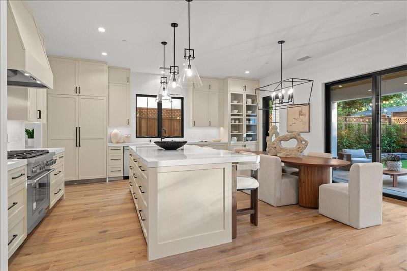 - Cooktop - Gas, Countertop - Quartz, Dishwasher, Garbage Disposal, Hood Over Range, Island, Microwave, Oven Range - Built-In, Pantry, Refrigerator, Wine Refrigerator