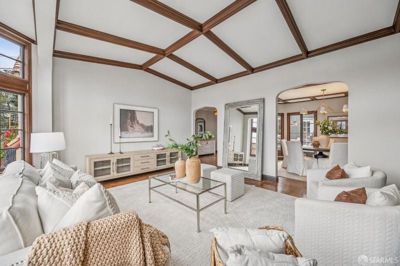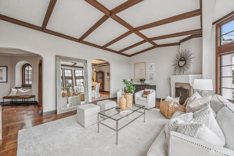 Open House Hosted by Sheldon Rilliet - Timeless 1930s Tudor in Inner Parkside, just moments from the shops, dining, and transit of West Portal. Set on a rare oversized lot, this beautifully maintained detached home blends classic architecture with comfortable living. The main level features a grand living room with vaulted ceilings, wood-burning fireplace, and rich period details, along with a formal dining room with coffered ceiling and a charming breakfast nook off the kitchen. Upstairs offers two spacious bedrooms and a full bath, filled with natural light and hardwood floors. The lower level provides a large family room and enclosed sunroom—ideal for additional living, office, or guest space—with direct access to a manicured backyard, patio, and mature landscaping. A rare opportunity with space, character, and upside in one of San Francisco’s most desirable neighborhoods.