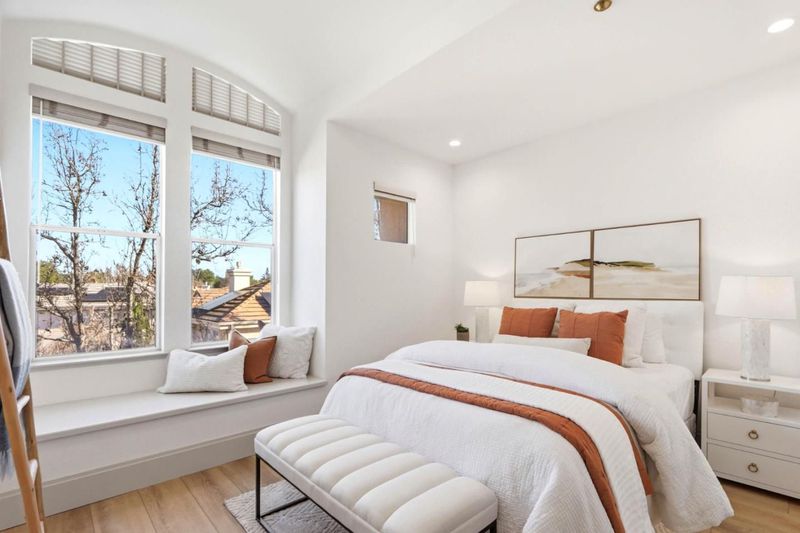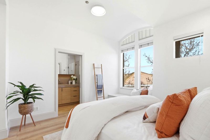 This is the fanciest remodeled townhome. Owners did it to their liking (not a flip) with new high end modern and tasteful fixtures. Like a new home, almost the entire interior has been remodeled. Natural light streaming in 2 sliders and many windows. Kitchen quartz countertops and full backsplash, SS appliances (gas range!), waterfall island, wood look cabinets w/soft close drawers, dual zone 29 bottle wine fridge. Open floor plan-kitchen, dining rm, family rm, living rm. 2 primary on-suites - 2 nooks, 2 walk in closets + closet. VERY luxurious bathroom - quartz countertops, wood look cabinets, floor to ceiling long rectangular tiles w/special floor in shower stall, customized massive medicine cabinet. Other primary bathroom has floor to ceiling long rectangular tiles over the tub. Laundry room. Relax in outdoor living space on your balcony. New recess and flush mount lights, shaker doors, wide 9 inch SPC planks with wood appearance, wide step baseboards, solid oak handrails, custom linen closet. Designer names - Hansgrohe, Duravit, Bosch. Freshly painted interior. 2 car side by side garage. 2 pools, hot tub, clubhouse, playgrounds, parks and tree lined streets. Close to downtown, Google, Microsoft, Apple, Stevens Creek Trail, MV schools, VTA, Central Expressway, 101, 85, 237.