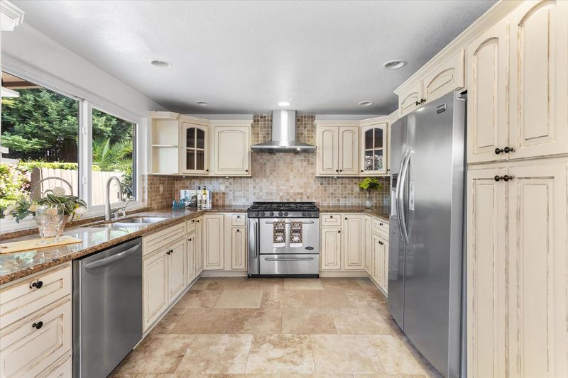 - Dishwasher, Hood Over Range, Island, Microwave, Oven - Gas, Oven Range - Built-In, Gas, Refrigerator