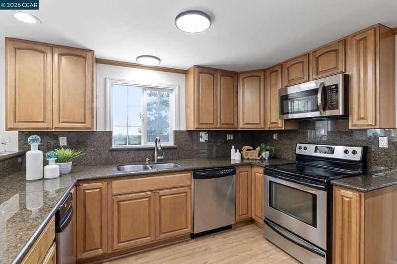 - Dishwasher, Electric Range, Microwave, Free-Standing Range, Refrigerator, Trash Compactor, Gas Water Heater, Stone Counters, Electric Range/Cooktop, Range/Oven Free Standing, Updated Kitchen