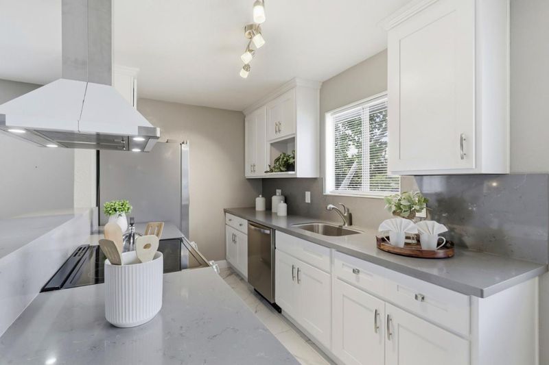 - Countertop - Quartz, Dishwasher, Garbage Disposal, Hood Over Range, Oven Range - Electric, Refrigerator