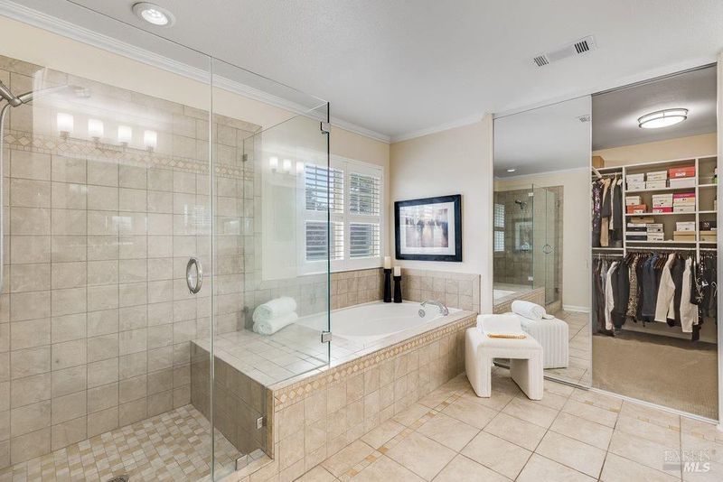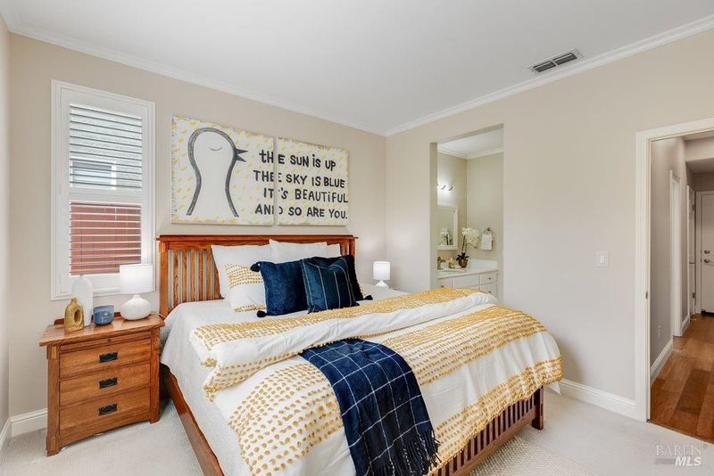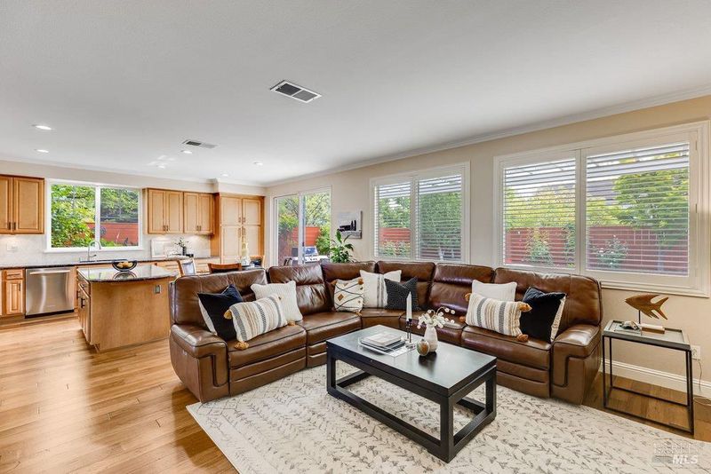 This home doesn't just check boxes it quietly exceeds them. Thoughtfully upgraded and meticulously maintained, every detail has been considered to create a space that feels both elevated and effortless. From the moment you step inside, soaring ceilings, rich engineered hardwood floors, designer chandelier & crown molding set the tone, while natural light pours through plantation shutters and custom window coverings. The kitchen is designed for both everyday ease and elevated entertaining, featuring updated cabinetry, pull out shelving, a custom tile backsplash, and a standout Smart Oven with interchangeable cooking elements that brings versatility to an entirely new level. The primary suite offers a true retreat, with a beautifully finished bathroom that includes a frameless glass walk in shower, soaking tub, and a fully built out closet system. Throughout the home, thoughtful upgrades continue from fresh interior paint and updated lighting to an ADT security system and a fully finished garage with added storage. Step outside and the lifestyle continues. A custom built pergola creates the perfect setting for outdoor dining or relaxing evenings, surrounded by refreshed landscaping, updated irrigation, and fully replaced and stained fencing. And then there's the efficiency owned solar, a high performance 30-panel system, and an EV charger in the garage bringing long-term value and modern convenience together seamlessly. This home offers a sense of openness and accessibility, while inside, it remains a peaceful and well cared-for retreat. This is a home where the work has already been done allowing you to simply move in and enjoy.