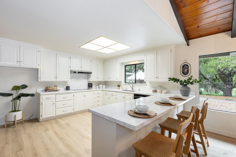 520 Fair Avenue - a truly rare West Petaluma country property, offered for the first time in over half a century. Privately sited on approximately 1.25 acres, on a secluded flag lot, this hidden retreat is set well back from the street, where a long drive opens to an impressive circular motor court and an expansive single-level residence. Encompassing over 2,300 sq. ft., the home offers 3 spacious bedrooms and 3 full bathrooms, with grand-scale living areas and a seamless, flowing floorplan designed for both refined entertaining and everyday comfort. Recently refreshed with wide-plank luxury vinyl flooring, fresh interior and exterior paint, and a brand-new heating and air conditioning system with updated ducting, the home blends timeless character with modern ease. At the heart of the home, the expansive kitchen is appointed with new quartz countertops, updated appliances, and a distinctive built-in brick BBQ, opening directly to a large family room with vaulted ceilings, a built-in wet bar, and sliding doors that lead to the backyard patio creating a natural connection to the outdoors and effortless indoor-outdoor living. Several bedrooms feature custom built-in cabinetry, adding both charm and functionality. Just beyond the kitchen, a generously sized mudroom and laundry space offers exceptional utility, with direct access to the oversized 3 car garage, a door to the backyard, and a conveniently located full bathroom. The grounds are nothing short of exceptional - over an acre of park-like privacy framed by majestic heritage oaks. A generous backyard patio and a charming cabana offer both covered and enclosed spaces for year-round enjoyment. The setting evokes a peaceful, country estate while remaining just minutes from the vibrancy of downtown Petaluma. A rare blend of scale, seclusion, and modern comfort in one of West Petaluma's most coveted settings.
