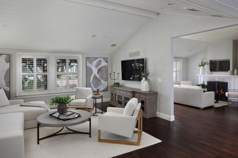 Rare opportunity to own a remarkable single-level home on a coveted quarter acre plus flat lot in desirable Cambrian. This turnkey home has undergone a major expansion and remodel that includes an open-concept, design-inspired gourmet kitchen with an oversized island, custom soft-close cabinetry, walk-in pantry, spacious dining area and vaulted family/great room with shiplap. The living room features a handsome gas fireplace, custom built-ins and beveled glass windows that flood the space with natural light. Timeless hardwood flooring and plantation shutters throughout. Two en-suite bedrooms, including a primary suite boasting striking coffered ceilings, custom walk-in closet, large French doors, as well as a spa-like bathroom with jetted tub, oversized shower, dual vanity and separate water closet. A massive backyard offers extensive lawn and patio space ideal for entertaining, family BBQs or simple relaxation, plus a flourishing garden with roses and fruit trees, including orange, apple, cherry, peach and quince. State-of-the-art audio, video and security networking. Dedicated laundry room. Detached 2-car garage is wired for a media room/theater/game center. Gated property. Top-rated schools. Close to Pruneyard Shopping Center, SJC and leading Silicon Valley tech campuses.