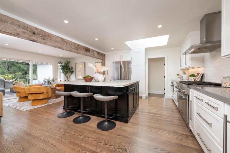 Stunning 5 bed | 3 bath home in the coveted Baywood Knolls on a 12,129 SF lot is a rare find! You are immediately greeted by a gorgeous award winning Japanese inspired garden which sets the stage for this zen-like experience that wraps you in style & comfort. Large front picture window frames the garden beautifully and out front you have a view of the San Francisco Bay/Skyline. Beautiful hardwood floors throughout, separate dining room, updated kitchen with custom oak beam, shaker cabinetry/glass cabinets, leathered quartzite island countertop, Thermador gas range, Bosch dishwasher, wine fridge, subway tile backsplash and a skylight for natural light. Primary suite with walk-in closet, updated primary & hall baths with fine finishes, laundry closet in hall bath for simplicity.The backyard opens up from the kitchen/family area to a deck, with views to the show stopping garden filled with curated plantings, water features, and design elements.. New Kentucky Bluegrass premium synthetic grass, Cecile Brunner climbing roses with string patio lights create an ideal outdoor retreat. Additional features, solar (OWNED), pre-wired EV charger, epoxy garage floor with custom storage, solar shade on deck, NEW interior & exterior paint, fireplace, top-rated schools, parks, dining and transit.