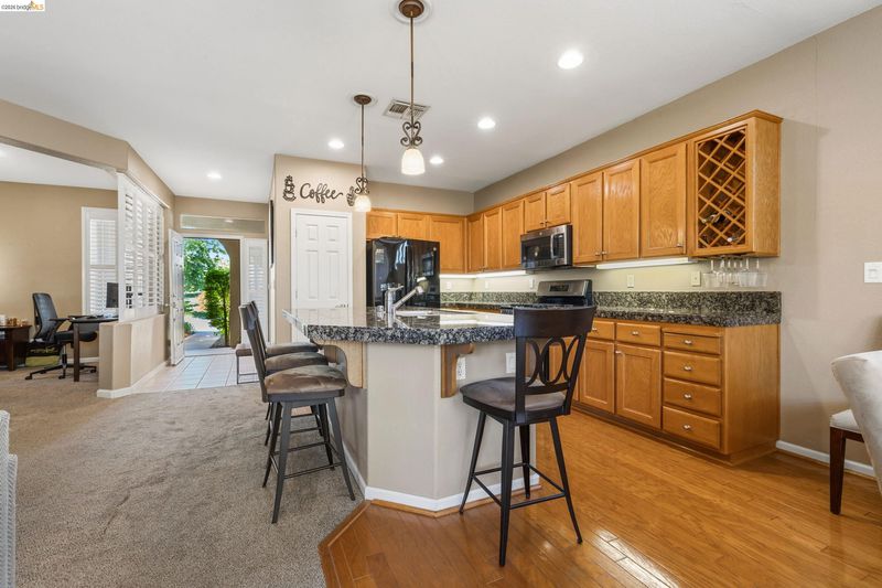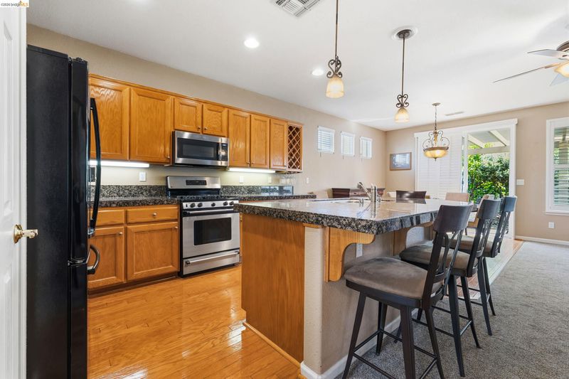 - Dishwasher, Microwave, Free-Standing Range, Refrigerator, Stone Counters, Disposal, Kitchen Island, Pantry, Range/Oven Free Standing