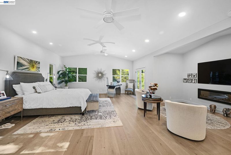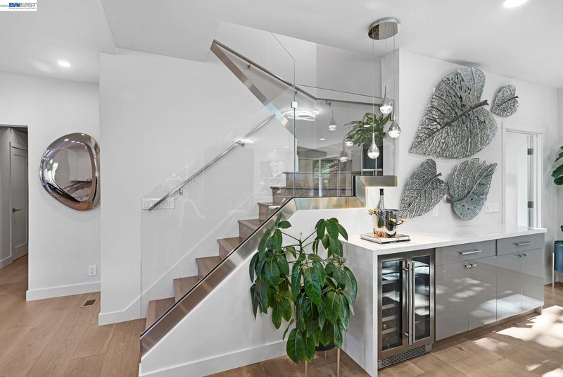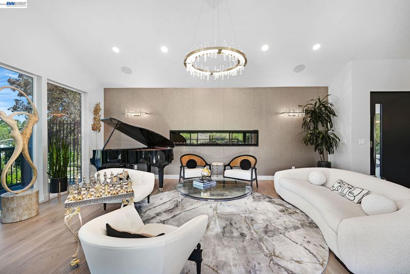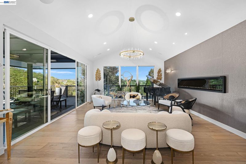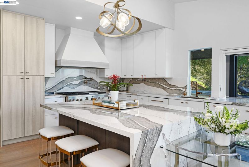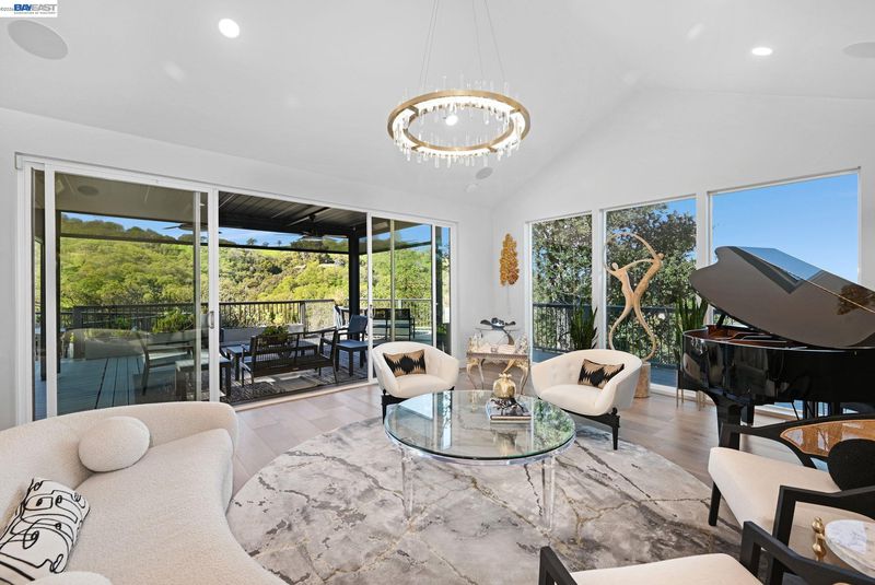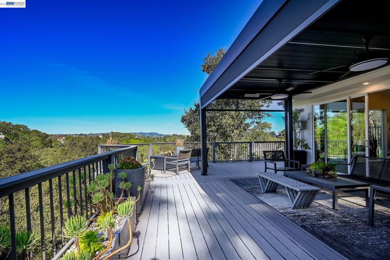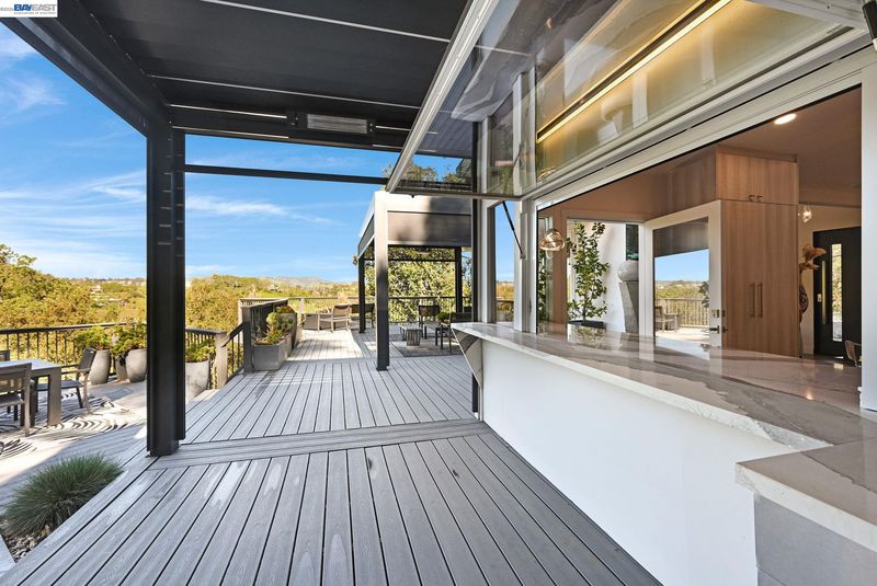 Stunning contemporary home with breathtaking valley views. This spectacular 4-bedroom, 3-bath residence offers approximately 3,623 sq. ft. of modern luxury and thoughtful design, ideal for comfortable living and stylish entertaining. The bright open floor plan features dramatic floor-to-ceiling windows capturing panoramic valley views. The chef’s kitchen includes custom modern cabinetry, quartz countertops with matching backsplash, and a spacious island. High-end GE Monogram appliances feature a professional 6-burner range with grill and double ovens, built-in refrigerator, microwave, food warmer, double-drawer dishwasher, and trash compactor. A flip-up window connects the kitchen to the outdoor entertaining area for seamless indoor-outdoor living. Modern hardwood floors, recessed lighting, and sleek glass railings enhance the contemporary style. The spa-inspired primary suite offers an oversized bathroom, walk-through custom closet, and private balcony with stunning valley views. Bathrooms are remodeled with premium finishes, including Toto toilets.The family room features a stylish dry bar and built-in speaker system throughout the main living areas and outdoor spaces. The terraced backyard offers sweeping views, fruit trees, a 15-ft MasterSpas swim spa, two electric pergolas.