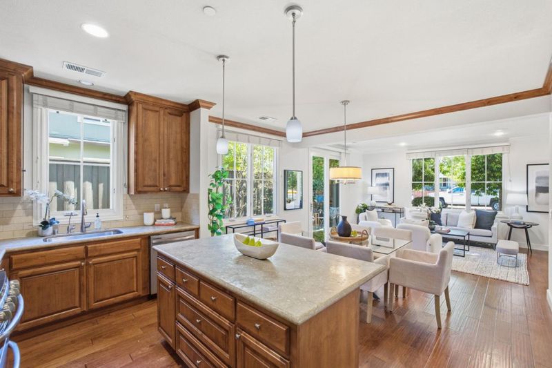 Located in Redwood City, this spacious 3-bedroom, 3.5-bath home, built in 2012, offers 2,050 sq ft of comfortable living. Designed for both functionality and style, the home features high ceilings, abundant natural light, and a well-balanced floor plan with a separate family room and dedicated dining area. The kitchen is equipped with stone countertops, a center island, and a full suite of appliances, making it ideal for everyday living and entertaining. A mix of hardwood, tile, and carpet flooring adds warmth and versatility throughout. The primary suite provides a relaxing retreat with an oversized soaking tub, dual vanities, and a separate shower. Additional bathrooms feature tasteful stone finishes and shower-over-tub configurations. Convenient upstairs laundry, central A/C, forced air heating, double-pane windows, and a tankless water heater enhance comfort and efficiency. A two-car garage completes the home. Situated within the Redwood City Elementary School District, this well-maintained residence offers both comfort and convenience in a desirable location.